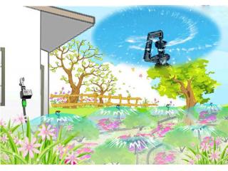 喷头360°旋转雨点洒水,半径2.6—3米,流量30-40L/H;(蓝色喷嘴半径3—3.5米、流量45—58L/H;绿色喷嘴半径3.4—4米、流量67—86L/H;红色喷嘴半径3.7—4.3米流量85—110L/H;)