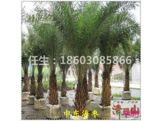 可孤植作景观树,或列植为行道树,也可三五群植造景,相当壮观,是充满贵族派的棕榈植物。应用于住宅小区、道路绿化,庭院、公园造景等效果极佳,为优美的热带风光树。目前有几个房地产楼盘栽种上中东海枣后很有特色,提高了整个楼盘的景观档次,福建漳州森景中东海枣园艺场种植的各种规格中东海枣表现良好,深受广大朋友们的喜爱。作为绿化苗木优质品种,中东海枣极具市场潜力,是目前绿化苗木中增值最快的树种之一。