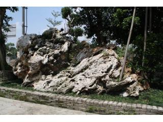 第二类谓\"庭园景石\",是庭园堆山叠石、散石点缀、孤石欣赏与造景,形体较大,置于室外庭园中的自然奇石,如太湖石、斧劈石、灵璧石等。