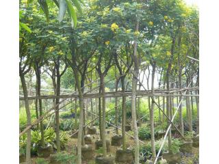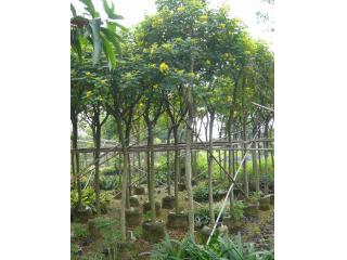 黄槐 (Cassia surattensis Burm. f.) 英文名:scrambled eggs tree 苏木科 决明属 原产地:原产印度、斯里兰卡、东南亚及大洋州 适应地区:我国东南部及南部栽培 生态分类:木本植物 > 半落叶乔木类 花槐树花果期:全年开花,5-6月及9-11月为盛花期 生长习性:阳性,耐半阴,喜高温多湿气侯,耐早,不抗风。小乔木,高5-7米。双数羽状复叶;叶柄及最下2-3对小叶间的叶轴上有2-3枚棍棒状腺体;小叶14-18枚,长椭圆形或卵形,长2-5厘米,宽1-1.5厘米,先端圆,微凹,基部圆,常偏斜,背面粉绿色,有短毛。伞房状花序生于枝条上部的叶腋,长5-8厘米;花黄色或深黄色,长1.5-2厘米;雄蕊10,全部发育;下面的2-3枚雄蕊的花药较大;子房有毛。荚果条形,长7-10厘米,宽0.8-1.2厘米。种子间微缢缩,先端有喙。全年开花结果。 繁殖方式:种子繁殖 我国东南部极常栽培;印度,锡兰,印度尼西亚,菲律宾,大洋洲也有。为庭院栽培植物。 其它:梨花迁粉蝶、镉黄迁粉蝶、宽边黄粉蝶、檗黄粉蝶;莱灰蝶的寄主。羽状叶常有夜合的现象,可以夜晚留意此品种的叶片,整棵树的叶都折合着,好像夜晚要睡觉一样.常见的含羞草也有此夜合现象. 园林价值:枝叶茂密,树姿优美,花期长,花色金黄灿烂,富热带特色,为美丽的观花树、庭园树和行道树。