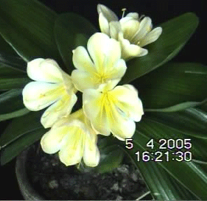 特点: 杂交品种后代,雀猴子。 花为纯正的金黄色,无红边、花大、形美、抽箭正常不打孔。前年开花五朵,去年开花7朵,花期长,近月余不变色。叶子应属小圆叶短叶,宽76mm,长18mm,不抱盆 。此花在2004年沈阳电视台“科技苑”节目曾详细介绍过。