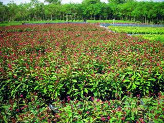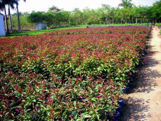 琴叶珊瑚Jatropha pandurifolia Andr. 学名:Jatropha integerrima 别名:琴叶樱 南洋樱 日日樱 红珊瑚 别名由来: 因其叶型似琴,而有名曰琴叶樱;另一名称南洋樱的来由,则是因由南洋引进而称南洋樱。 花朵虽然不大,由于花期长,无论什么时候,都可以看到它开花,而且长得像樱花,所以叫做日日樱,也叫做南洋樱、琴叶樱,是庭园常见的观赏花卉。 科属:大戟科Euphorbiaceae 痳疯树属 分布:原产中美洲,我国南方多有栽培。 性状:常绿灌木,植物体有乳汁。株高约1-2公尺。单叶互生,倒阔披针形,常丛生于枝条顶端。叶基有2~3对锐刺,叶端 渐尖,叶面为浓绿色,叶背为紫绿色,叶柄具茸毛,叶面平滑。花:聚伞花序,花瓣5片,花冠红色;且为单性花,雌雄同株,自着生于不同的花序上;另有粉红品种。果:蒴果成熟时呈黑褐色。 原产地:西印度群岛。 光照不足时易产生叶多花少的情形发生,原产于西印度的日日樱,其原生环境跟台湾非常的类似,故适应的非常好,而被广泛应用于景观上。 用途:适合庭植或大型盆栽。