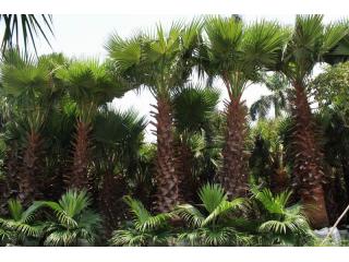 老人葵 学名:Washingtonia filifera Wendl. 拉 丁 名: Washingtonia filifera 别名:老人葵,华盛顿葵 科属:棕榈科 属:棕榈科 生态分类:木本植物常绿乔木类 观赏分类:荫木类 高度范围:20 (M) 形态特征: 其干枯的叶子下垂,覆盖于茎干,叶片间一屡屡白丝状纤维,似老翁白发. 树干粗壮通直,近基部略膨大。树冠以下被以垂下的枯叶。叶簇生干顶,斜上或水平伸展,下方的下垂,灰绿色,掌状中裂,圆形或扇形折叠,边缘具有白色丝状纤维。肉穗花序,多分枝。花小,白色。核果椭圆形,熟时黑色。花期6-8月。 生长习性: 喜温暖、湿润、向阳的环境。较耐寒,在-5度的短暂低温下,不会造成冻害。较耐旱和耐瘠薄土壤。不宜在高温、高湿处栽培。 景观用途: 是美丽的风景树,干枯的叶子下垂覆盖于茎干似裙子,有人称之为“穿裙子树”,奇特有趣;叶裂片间具有白色纤维丝,似老翁的白发,又名“老人葵”。宜栽植于庭园观赏,也可作行道树。 这是棕榈科植物中较耐寒的种类之一,可耐-6℃的低温,抗风抗旱力均很强,生长迅速,树干直而挺拔,基部显著膨大,,粗壮而呈红褐色的树干格外引人注目