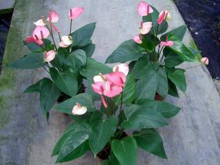 红掌是重要的热带切花,佛焰花序,其佛焰花苞硕大,肥厚具蜡质,色泽有红、粉、白、绿、双色等。其色泽鲜艳,造形奇特,应用范围广,经济价值高,是目前全球发展快、需求量较大的高档热带切花和盆栽花卉。