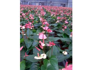 红掌是重要的热带切花,佛焰花序,其佛焰花苞硕大,肥厚具蜡质,色泽有红、粉、白、绿、双色等。其色泽鲜艳,造形奇特,应用范围广,经济价值高,是目前全球发展快、需求量较大的高档热带切花和盆栽花卉。