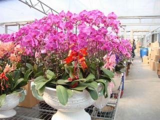 蝴蝶兰属是著名的切花种类,全属50多种,蝴蝶兰是单茎性附生兰,茎短,叶大,花茎一至数枚,拱形,花大,因花形似蝶得名。其花姿优美,颜色华丽,为热带兰中的珍品,有“兰中皇后”之美誉。
