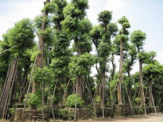 樟树   拼音:zhāng shù   学名:Cinnamomum camphora (L.) Presl.   科别:樟科 樟属   别名:香樟、木樟、乌樟、芳樟、番樟、香蕊、樟木子   国家Ⅱ级重点保护野生植物(国务院1999年8月4**准)   产地 湖南 湖北 江西 四川 南方广大地区   樟树是浙江省杭州市、宁波市、江西省南昌市、上饶市 、景德镇市、安徽省马鞍山、安庆市、湖南省长沙市、湖北省鄂州市的市树。   三十年的大香樟 [编辑本段]【形态特征】   樟树是属于樟科的常绿性乔木。高可达50米,树龄成百上千年,可称为参天古木,为优秀的园林绿化林木。树皮幼时绿色,平滑;老时渐变为黄褐色或灰褐色纵裂。冬芽卵圆形。叶薄革质,卵形或椭圆状卵形,长5—10厘米,宽3.5—5.5厘米,顶端短尖或近尾尖,基部圆形,离基3出脉,近叶基的第一对或第二对侧脉长而显著,背面微被白粉,脉腋有腺点。花黄绿色,春天开,圆锥花序腋出,又小又多。球形的小果实成熟后为黑紫色,直径约零点五公分;花期4—5月,果期10—11月。   灰褐色的树皮有细致的深沟纵裂纹。樟树全株具有樟脑般的清香,可驱虫,而且永远不会消失。叶互生,纸质或薄革质,树干有明显的纵向龟裂,极容易辨认。据说因为樟树木材上有许多纹路,像是大有文章的意思。所以就在“章”字旁加一个木字做为树名。   樟树是常绿乔木,它的常绿不是不落叶,而是春天新叶长成后,去年的老叶才开始脱落,所以一年四季都呈现绿意盎然的景象...樟树的小花非常独特,外围不易分辨出花萼或花瓣的花有6片,中心部位有9枚雄蕊,每3枚排成1轮。   病虫害防治   一、白粉病:此病多发生在圃地幼苗上。在气温高、湿度大,苗木过密。通气不良的条件下最易发生。嫩叶背面主脉附近出现灰褐色斑点,以后蔓延整个叶背,并出现一层白粉,严重的嫩枝和干上也有白粉。   防治方法:   1、苗圃要经常注意环境卫生,适当疏苗;或发现少数病株时应立即拔除或烧毁。   2、发生时用波美0.3—0.5度的石硫合剂,每10喷射一次,连续三、四次。   二、黑斑病 樟树种子发芽出苗后长出1—4片叶时,容易发生此病。从苗尖向根部变成黑褐色而死亡。   防治方法 播种时做好种子、土壤及覆盖物等消毒工作。在发病时,先拔除烧毁病苗,并用0.5%的高锰酸钾或福尔马林喷射二、三次,即可防止蔓延。   三、樟叶蜂 一年中发生代数多,为害期长,1年生苗受害严重死导致枯死,造林后树木树冠上部嫩叶常被吃光,严重时影响树木生长。   防治方法:可用0.5公斤闹羊花或雷公藤粉加清水75—100公斤制成药液喷射苗木,或用90%敌百虫或50%马拉松乳剂各2000倍液喷杀。   四、樟梢卷叶蛾 一年发生数代,幼虫蛀食枝梢,影响樟树高生长,致使干形弯曲。   防治方法:   1、3月樟树新梢抽出后,第一代幼虫孵化时用90%敌百虫、50%二溴磷乳剂、50%马拉松乳剂10000倍液进行喷射,每隔5天一次,连续二、三次,能杀死幼虫。如果幼虫已蛀入新梢,也可喷洒40%乐果乳剂200—300倍液。   2、苗圃或小面积林地,可在冬季收集枯枝落叶烧毁,以消灭越冬蛹。   五、樟果螟 一般为害樟树幼苗和20年生以下幼树。一年发生二代。第一代幼虫在5月底到7月中旬为害。第二代幼虫在8—9月为害,幼虫成群集结于新梢上取食叶芽,并吐丝把残叶卷成球状,包扎顶芽,以至新梢枯死,甚至全株死亡。