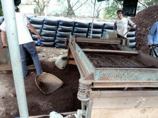 工人在打包泥炭土