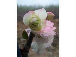 醉杨妃 大灌木。花重瓣,直径4~5cm;花瓣约25枚,近圆形;初开时外面红色而内部绿白色,后渐变粉红至红色(RHS-CC 37A~39B)。该品种为新品种,是毛叶木瓜中目前发现的唯一的重瓣品种,由山东临沂选育出。