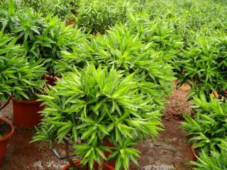 多年生常绿灌木或小乔木,叶松散成簇生长,叶片线形或披针形,顶端渐尖,全缘,叶色碧绿而有光泽。习性强健,喜高温多湿,生长适温20—28℃,耐旱也耐湿,温度高则生长旺盛,冬季干冷易引起叶尖干枯。宜半阴,忌强烈阳光直射,越冬要求12℃以上。