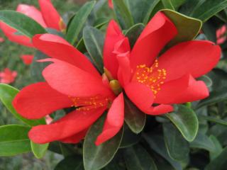 四季红山茶,栽培上也叫做杜鹃红山茶。分类上它隶属山茶科(Theaceae)山茶属(Genus Camellia)是山茶属中唯一的一个花朵漂亮、能够四季开花的奇特原种,成为继金花茶之后又一个引起茶花世界轰动的我国独有的宝贵山茶种质资源。
