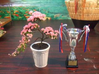 本中心,紧随市场变化和需求,近几年又生产丹东杜鹃及小叶小花盆景杜鹃20余种。有悬崖式、浮云式、塔式、步步登高式、吊式等各种不同类型,在国内几次大展中拥有“北派杜鹃造型一绝”称号。
