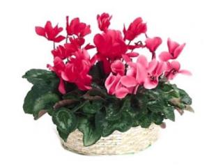 仙客来块茎扁圆球形或球形、肉质。叶片由块茎顶部生出,心形、卵形或肾形,叶缘有细锯齿,叶面绿色,具有白色或灰色晕斑,叶背绿色或暗红色,叶柄较长,红褐色,肉质。花单生于花茎顶部,花朵下垂,花瓣向上反卷,犹如兔耳;花有白、粉、玫红、大红、紫红、雪青等色,基部常具深红色斑;花瓣边缘多样,有全缘、缺刻、皱褶和波浪等形。