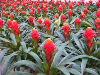 当今常见的种类和品种,主要是属于凤梨科的珊瑚凤梨属(Aech-mea)、水塔花属(Billbergia)、果子蔓(Guzmania)、彩叶凤梨属(Neo-regelia)、铁兰属(Tillandsia)和莺歌属(Vriesea)这6个类群。它们以观花为主,也有观叶的种类,其中还有不少种类花叶并貌,既可观花又可观叶。