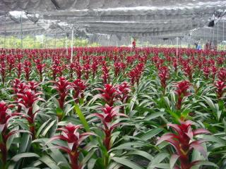 观赏凤梨为凤梨科多年生草本植物,原产于中、南美洲的热带、亚热带地区,以附生种类为主,一般附生于树干或石壁上,性喜温暖、潮湿的半遮阴环境。