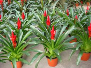 当今常见的种类和品种,主要是属于凤梨科的珊瑚凤梨属(Aech-mea)、水塔花属(Billbergia)、果子蔓(Guzmania)、彩叶凤梨属(Neo-regelia)、铁兰属(Tillandsia)和莺歌属(Vriesea)这6个类群。它们以观花为主,也有观叶的种类,其中还有不少种类花叶并貌,既可观花又可观叶。