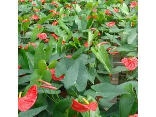 红掌是重要的热带切花,佛焰花序,其佛焰花苞硕大,肥厚具蜡质,色泽有红、粉、白、绿、双色等。其色泽鲜艳,造形奇特,应用范围广,经济价值高,是目前全球发展快、需求量较大的高档热带切花和盆栽花卉。