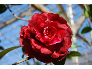 属云南山茶传统名贵品种,叶宽卵圆形至长椭圆形,叶片肥厚,花深红色近于紫黑色,花瓣在阳光下反射金绒般光泽,直径13-15厘米,花瓣约46片。此品种枝干上多有裂纹凹陷,形如蜂窝眼,枝条易折断,俗称蜂窝紫袍。原产大理,是云南山茶中的珍品。