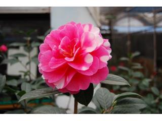 属云南山茶品种。叶椭圆形,叶面微内曲。花桃红色,直径12-14厘米。花瓣26-34片,外轮花瓣大,内轮较小,具白色条纹。树势生长健旺,枝条茂密,枝条向上。中国科学院昆明植物研究所选育出的新品种。