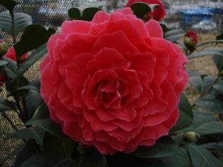 属云南传统名贵品种。叶宽椭圆形至卵圆形,叶宽大,质脆而薄。花桃红色,瓣边具白晕,直径9-11厘米,花瓣约40片,从外向内逐渐变小。植株矮小,生长缓慢,由于花瓣多、花色美、培育难,繁殖速度慢,为云南山茶花中最珍贵品种。
