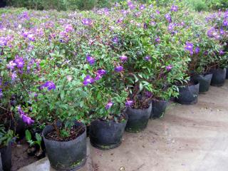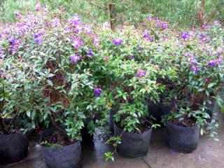 种名:巴西野牡丹[1] 学名:Tibouchina semidecandra 别名:紫花野牡丹、艳紫野牡丹 科属:野牡丹科蒂牡花属,产于低海拔山区及平地。性喜高温,极耐旱和耐寒,花期长,常绿小灌木株高约60~200公分,用于盆栽阳台观赏或庭园花坛种植,道路绿化工程等