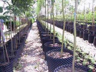 “控根容器”由3个部件组成,即底、围边和扣杆。底具有防止根腐病和控制主根盘绕的功能;围边是凸凹相间,外侧顶端有小孔,既可扩大围表面积,又为侧根“气剪”(空气修剪)提供了条件,扣杆拆卸方便,而且对固定、拉紧有独特的奇效。 控根快速育苗容器是一种以调控根系生长的新型快速育苗技术,对防止根腐病和主根的盘绕有独特的功效。 控根容器可以使侧根形状粗而短。不会形成缠绕的盘根,克服了常规容器育苗带来根缠绕的缺陷,总根量增加30-50倍,苗木成活率达到98%以上,育苗周期缩短一半,移栽后管理工作量减少50%以上,该容器除能使苗木根系健壮,生长旺盛,特别是对大苗木培育移栽及季节移栽和恶劣条件下的植树造林,具有明显优势。 1、增根作用:控根育苗容器内壁有一层特殊薄膜,且容器侧壁凸凹相间、外部突出的顶端开有气孔,当种苗根系向外向下生长接触到空气(侧壁上的小孔)或内壁的任何部位时,根尖则停止生长,接着在根尖后部萌发出3个新根继续向外向下生长,当接触到空气(侧壁上的小孔)或内壁的任何部位时,又停止生长并又在根尖后部长出3个新根。这样,根的数量以3的级数递增,极大地增加了短而粗的侧根数量,根的总量较常规的大田育苗提高20—30倍。 2、控根作用:一般育苗技术,主根过长,侧根发育较弱。采用常规容器育苗方法,种苗根的缠绕现象非常普遍。控根技术可以使侧根形状短而粗,发育数量大,同时限制了主根的生长,不会形成缠绕的根。 3、促长过程:由于控根容器与所用基质的双重作用,苗木根系发育健壮,可以储存大量的养分,满足苗木的定植初期的生长需求,为苗木的成活和迅速生长创造了良好的条件。移栽时不伤根,不用砍头,不受季节限制,管理程序简便,成活率高,生长速度快。 1、林木大苗全冠移栽技术难题 常规绿化大苗移栽,都须截枝去冠,否则很难成活。控根快速育苗技术采用特制育苗容器以控制主根系生长,促使毛细根快速生长,形成粗而短的发达须根系,且数量大,根系营养充足,树木生长旺盛,移栽时不起苗、不包根、不需要砍头、截枝、摘叶,完全可以全冠移栽大苗,被誉为可移动的森林。 2、成活率的技术难题 设计独特的控根容器不但透气性能好,而且具有防止根腐病和主根缠绕的独特功效,加上控根专用基质的双重作用,使苗木所需水肥条件得到良好控制,控根容器拆卸方便,移栽时不伤根,所以移栽成活率可达100%,况且后期管理费用可减少50-70%。 3、四季均可移栽的技术难题 用该技术培育的苗木,不起苗,不伤根,不失水,可拆卸的控根容器,更易运输、远载,节省方便,创四季移栽,成活率高。 4、解决了果园快速更新的技术难题 果园更新换代至少需要5年时间,采用控根育苗技术可在空闲地上育苗,2-3年内苗木地径可达4厘米左右、冠径可达1米以上,已能开花、少量开始结果,移栽时不伤根、不换苗,次年即可大量结果,这样既能保证在果园更新期间,果农收入不减,同时又确保苗木品种纯正。比较内容 常规方法(大田育苗、裸根移栽) 空根快速育苗技术 比较结果移栽成活率 小于30% 大于98% 增加3倍育苗周期 2-5年 1-3年 缩短30-50% 总根量 100% 2000-3000% 增加20-30倍地上部分 100% 250-300% 增加1.5-2倍后期管理 100% 30-50% 减少50-70%
