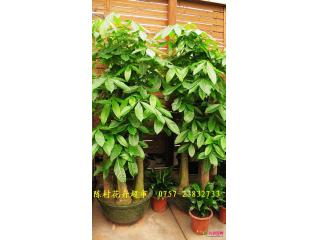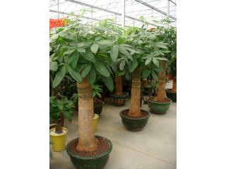 发财树又称瓜栗,马拉马栗。为木棉科常绿小乔木。原产墨西哥利哥斯达黎加。掌状叶,小叶7-11枚,长圆至倒卵圆形。有园艺品种\\\"花叶\\\"发财树。由于发财树的名称深受商家及一般市民的欢迎,加立株形状美、叶色亮绿,树干呈锤形,盆载后适于在家内布置和美化使用,所以,近些年来在我国花卉市场上发展甚快。每逢节日,各宾馆、饭店、商家及市民多争相采购,以图吉祥如意。 栽培要点: 1、温度。冬季最低温度16-18℃,低于这一温度叶片变黄脱落;10℃以下容易死亡。 2、光线。发财树为强阳性植物,在海南岛等地均露地种植。但该植物耐阴能力地较强,可以在室内光线较弱的地方连续欣赏2-4周。而后放在光线强的地方。 3、水份。在高温生长期要有充足的水分;但耐旱力较强,数日不浇水不受害。但忌盆内积水。冬季减少浇水。 4、空气温度。生长时期喜较高的空气温度;可以时常向叶面少量喷水。 5、换盆。根据需要可于春季换盆。 手树俗称发财树,为五加科假概木属的常绿灌木或小乔木,茎直立,叶大互生,有长柄,掌状复叶,有小叶9-12枚,小叶长12-15厘米,宽约6厘米。因其树形叶形奇特,俗名吉利,因取其吉利佳兆,故近来引种栽培者渐多。 此花原产澳洲及太平洋中的一些岛屿中,适生于温暖湿润通风良好环境,喜阳,也稍耐阴,在疏松肥沃排水性好的土壤中生长最好。 盆栽的手树1-2年就应换一次盆,于春季出房时进行,并对黄叶及细弱枝等作必要修剪,促其萌发新梢。浇水要遵循间干间湿的原则,春秋天按天气晴雨、干湿等情况掌握浇水疏密,一般一天浇1次,气温超过35℃时,一天至少浇2次,生长季每月施2次肥,对新长出的新叶,还要注意喷水,以保持较高的环境湿度;6-9月要进行遮荫,保持60%一70%的透光率或放置在有明亮散射光处。冬季入室后,气温不要低于5℃,保持在10℃左右较好,浇水5-7天1次,并要保证给予较充足的光照。另外,在生长季,如通风不良,容易发生红蜘蛛和介壳虫危害,应注意观察。发现虫害要及时捉除或喷药。 手树繁殖可用播种或扦插法,种子采收后要立即播下;扦插可于5-6月取萌蒙枝作插穗;扦入砂或峻石中,注意遮荫,保湿,约一个月即可生根。