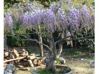 家有紫藤一盆,上盆已15年.需数人才可抬走.主干直径25厘米,冠径2.15米;紫花全放时,形成厚密的花冠,放上鸡蛋都不会穿花而下.如有雅意,可来看货.换张图片,紫藤不变,只是给个比例.请看宣酒瓶与紫藤的比例.直径25厘米,冠径2.15米数据精确,人到可量.