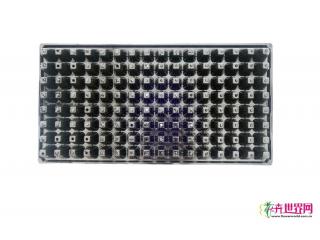 育苗穴盘是一种培育幼苗的塑料制品。不论是花卉还是蔬菜,穴盘育苗是现代园艺最根本的一项变革,为快捷和大批量生产提供了保证。穴盘已经成为工厂化种苗生产工艺中的一个重要器具。制造穴盘的材料一般有聚苯泡沫、聚苯乙烯、聚氯乙烯和聚丙烯等。制造方法有吹塑的,也有注塑的。一般的蔬菜和观赏类植物育苗穴盘用聚苯乙烯材料制成。标准穴盘的尺寸为540mm×280mm,因穴孔直径大小不同,孔穴数在18-800之间。栽培中、小型种苗,以72--288孔穴盘为宜。育苗穴盘的穴孔形状主要有方形和圆形,方形穴孔所含基质一般要比圆形穴孔多30%左右,水分分布亦较均匀,种苗根系发育更加充分。育苗穴盘的颜色会影响植物根部的温度。白色的聚苯泡沫盘反光性较好,多用于夏季和秋季提早育苗,以利反射光线,减少小苗根部热量积聚。而冬季和春季选择黑色育苗盘,因其吸光性好,对小苗根系发青有利。