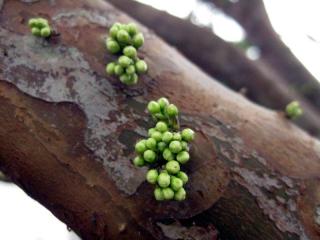 嘉宝果:一种常绿灌木,成长缓慢,果实状似葡萄,故又称树葡萄,树高约12-45尺,树皮色薄,随树龄增长树干增大而逐渐脱落。该树种在原产地巴西或亚马逊河(海拔高度从海平面至3000尺)都有,最大低温耐寒约零下10度左右,因品种不同而有所差异。