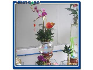 功能介绍: 此款水培花瓶为水培、气雾培植、水族多用专利产品,内置LED灯光,微型氧气泵,12V直流工作电源,安全供电,功率极小。配有独特放水阀门,解决了传统水培花瓶、水族箱换水困难的问题。外观新颖独特,灯光色彩斑斓梦幻,可以养水培花,可以养鱼,亦可单独用于家居、办公装饰摆设。丰富的氧气雾还可以给干燥的室内环境增加氧雾水份。产品特点: 1、通过外配的插墙式电源适配器把通用民用电源100/240V转换为直流12V工作电源,花瓶直流电源工作,有效排除操作中交流电源带来的不安全因素。 2、新型LED冷光源,有多种色彩的高亮、闪烁灯光搭配,使水族环境梦幻斑斓,水培植物根部色彩鲜艳。而且功率小,耗电少,不发热。新型的LED冷光源区别与普通的LED灯光,我们产品的灯光闪烁具有独特的频率,能为水培植物的光合作用提供能量(意义:1:提供光源。2:光解水,产生氧气。3:将光能转变成化学能,产生ATP,为植物光合作用的暗反应阶段提供能量。4:利用水光解的产物氢离子,合成NADPH+H离子,为暗反应提供还原剂。),使水培植物易成活,易生长。 3、配有独特的微型氧气泵,为水培植物、水族、干燥的室内环境提供氧气,持续的氧气供应能保证水培花卉的生长所需的氧气,并且使根部不易腐烂,氧气的气泡在上升过程中带动水的流动,并把氧气融合进水里,从而把水培花瓶小环境的水变成富含氧气的活水,这样的环境水培植物更容易成活,并可以常年生长。氧气在工作过程中产生的气雾(不可见)配合绿色的水培植物形成了富含氧离子的水雾,相当于一个微型的天然氧吧,可为干燥的环境提供必要的水分和所需的氧离子,特别适合为长期开空调工作的环境作为调谐,更适合为我国北方较干燥环境的室内提供氧雾加湿。 4、水培专用,诱导驯化一步完成,有氧呼吸快速生根,有效防止水培植物根腐病,易成活,易成长。使水培花卉变得不再难养!气雾培植:使用营养液气雾培植,可以选择更多的植物品种来水培,更可培植木本植物!