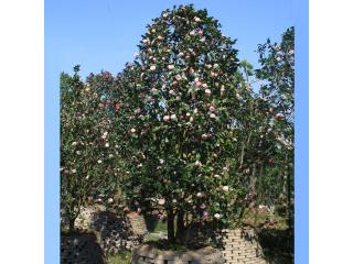 原生、大型的茶花在市场上并不多见,【千叶松园】园内有各种规格的原生茶花,非常适宜作庭院、高档住宅区、企事业单位及城市绿化之用,一树伫立,观花观叶两相宜。