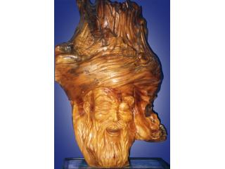 用自然风化的樟木树榴,巧用树纹做头饰,雕琢不多,一个慈祥老人头像,维妙维肖,巧夺天工...