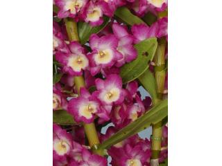 春石斛喜暖和湿润的环境,生长开花的适宜温度为10℃至30℃,冬季能忍耐2℃至3℃的低温,夏季也能忍受30℃以上的高温,但是过高或过低的温度会使植株生长受到抑制,部分叶片受害。在充足而柔和的阳光下生长良好,若光照不足则植株徒长,叶片细长嫩薄,叶色转浓绿,长势减缓,易发生病虫害,而在光照充足处,植株生长繁茂,叶片宽厚有光泽花店,花色艳丽,花期延长花店。同时避免强光照射,夏季要遮去50%的阳光,其他季节也要给予全光,开花时宜保持弱光照射,有利于花朵的品质。春石斛常在春节前作为年宵花上市,新买的植株放在室内观赏时,要离暖气、空调远一些,以免热风直吹,否则花朵会很快凋谢。花开三周左右花朵自然凋谢,应及时将残花剪去。平时浇水做到见干见湿,避免盆土积水,以免引起烂根。但空气湿度要大,并要求有良好的通风。生长期每月喷施1次到2次叶面肥,也可每2月至3月施一次固态复合肥花店,施肥时注重宁淡勿浓。由于春石斛需要一定的低温的刺激,才能形成花芽,帮11月份在10℃至13℃的条件下,要经过一个月的低温处理,并暂停浇水,等花芽伸出后再恢复浇水。经过低温处理的春石斛在升温时,升温幅度不要超过10℃,也不要将温度升至28℃以上,否则这种情况持续7天至10天,植株会产生回芽现象,即已萌动的花芽会逆转为叶芽,这点一定要格外小心。假如养护得当,春节前植株又会缩放出漂亮的花朵。
