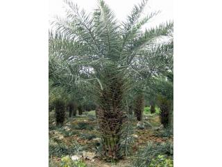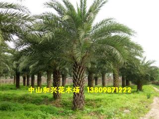 中东海枣,杆高3-4.5米,假植苗/地苗中东海枣,别名:银海枣 科名:棕榈科刺葵属。 学名:Phoenix sylvestris。 原产地:印度、缅甸。 生活环境:是一种耐高温、耐水淹、耐干旱、耐盐碱、耐霜冻(能抵抗-10℃的严寒,除东北和大西北冬天极严寒地域外),喜阳光,可在热带至亚热带气候下种植的棕榈科植物。栽培土壤要求不严,但以土质肥沃、排水良好的有机壤土最佳。银海枣生长快速, 各地均能引种,也是优良的室内植物。 形态特征:银海枣植株高大雄伟,形态优美,树干粗壮,叶顶丛生,羽片密而伸展,大型羽状叶片向四方开张,形态如苏铁,使其成为最具观赏价值的羽状叶棕榈植物。干上残余叶柄伏贴干上,高可达10公尺,径为30公分,褐色,残余叶柄灰褐色,无叶鞘假茎,叶柄基部的棕蓑少少复叶基部的小叶变成针刺,羽状复叶较密,长约2-3公尺,果实指头大小。 用途:可孤植作景观树,或列植为行道树,也可三五群植造景,相当壮观,是充满贵族派的棕榈植物。应用于住宅小区、道路绿化,庭院、公园造景等效果极佳,为优美的热带风光树。