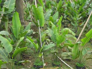 旅人蕉 学 名: Ravenala madagascariensis 别 名:扇芭蕉。科:旅人蕉科。属:旅人蕉属 产地分布:旅人蕉原产非洲马达加斯加岛,深受当地人喜爱,被誉为“国树”。我国广州及海南有少量栽培。 形态特征:为常绿乔木状多年生草本植物。株高约10m。干直立,不分枝。叶成两纵列排于茎顶,呈窄扇状,叶片长椭圆形。蝎尾状聚伞花序腋生,总苞船形,白色。为旅人蕉科旅人蕉属常绿乔木状多年生草本植物,高大挺拔,娉婷而立,貌似树木,实为草本,叶片硕大奇异,状如芭蕉,左右排列,对称均匀,犹如一把摊开的绿纸折扇,又象正在尽力炫耀自我的孔雀开屏,极富热带自然风光情趣。 生长习性:喜光,喜高温多湿气候,夜间温度不能低于8℃。要求疏松、肥沃、排水良好的土壤,忌低洼积涝。 园林用途:旅人蕉叶硕大奇异,姿态优美,极富热带风光,适宜在公园、风景区栽植观赏。叶柄内藏有许多清水,可解游人之渴。 繁殖培育:分株法繁殖。盆栽者于早春或开花后,结合换盆从根茎处切开分栽。夏季不耐阳光直射,须适当遮荫和通风,或于叶面喷水增湿降温。寒地冬季应移入阳光充足的室内越冬,室温保持在13~18℃之间。栽培中如通风不良易遭蚧壳虫危害。 非洲沙漠,炎热干燥,旅人蕉不仅可为人们遮挡烈日强光,而且是天然的饮水站。旅人蕉的每个叶柄底部都有一个酷似大汤匙的“贮水器”,可以贮藏好几斤水,只要在这个位置上划开一个小口子,就象打开了水龙头,清凉甘甜的泉水便立刻涌出,可供人们开怀畅饮,消暑解渴。而且这个“水龙头”拧开后又会自动关闭,一天后又可为旅行者提供饮水。因此,人们又称旅人蕉为“旅行家树”、“水树”、“沙漠甘泉”、“救命之树”等。
