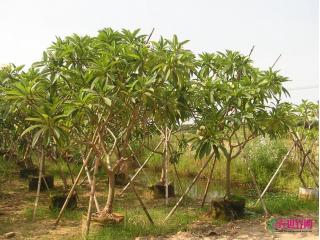鸡蛋花又叫缅栀子、蛋黄花、印度素馨、大季花,在我国西双版纳以及东南亚一些国家,鸡蛋花被佛教寺院定为“五树六花”之一而被广泛栽植,故又名“庙树”或“塔树”。其树形美观,奇形怪状,全株茎干含有乳汁。鸡蛋花为夹竹桃科,鸡蛋花属落叶灌木,是热带地区开花最美丽的多肉植物,在热带的地栽高度可以达到4-5米,是重要的庭园植物,在北方只能盆栽观赏,通常在2米以下。鸡蛋花在温室栽培时冬季会落叶,这是其耐寒性差的表现,但落叶后光秃的树干弯曲自然似盆景,也有很强的观赏性。