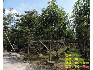 芒果果实呈肾脏形,主要品种有土芒果与外来的芒果,未成熟前土芒果的果皮呈绿色,外来种呈暗紫色;土芒果成熟时果皮颜色不变,外来种则变成橘黄色或红色。芒果果肉多汁,味道香甜,土芒果种子大、纤维多,外来种不带纤维。常见果实品种有青芒果,即