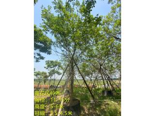 树叶对生,纸质有疏锯齿,掌状复叶,柄长,小叶4-5枚,五叶轮生,卵状椭圆形,全缘或疏齿缘,全叶被褐色细茸毛,先端尖,叶面粗糙;n圆锥花序,顶生,花两性,萼筒管状,不规则开裂,花冠金黄色,漏斗形,长2.5-8厘米,也像风铃状,五裂,花缘皱曲,但为两侧对称花,甜香,雄蕊4枚,二强,不突出;子房二室;n果实为蓇葖果,长条形向下开裂,长18-25厘米,有许多绒毛以利种子散播,种子具翅;先花后叶,春季约3-4月间开花,花期较短,约10-15天
