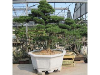 经抑制生长,蟠曲造型,姿态雄壮,高亢壮丽。均富观赏价值,黑松盆景对环境适应能力强,庭院、阳台均可培养。其枝干横展,树冠如伞盖,针叶浓绿,四季常青,树姿古雅,可终年欣赏。在生长期间,宜陈放于室外阳光充足、空气流之处,不宜长时间放置于室内。多年培养的黑松桩景,老干苍劲虬曲,盘根错节。