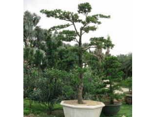 罗汉松应用: 罗汉松树形古雅,树姿秀丽葱郁,夏、秋季果实累累,惹人喜爱,南方寺庙、宅院多有种植。是高档庭院树种。地栽适用于小庭院门前对植和墙垣、山石旁配置,中庭孤植,或于墙垣一隅与假山、湖石相配。也可盆栽或制作树桩盆景供室内陈设。斑叶罗汉松可作花台栽植,亦可布置花坛或盆栽陈于室内欣赏。小叶罗汉松还可作为庭院绿篱栽植。