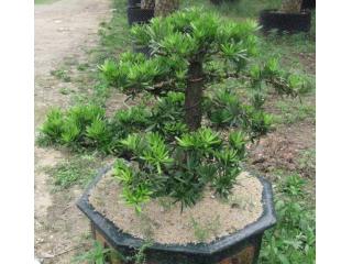 罗汉松应用: 罗汉松树形古雅,树姿秀丽葱郁,夏、秋季果实累累,惹人喜爱,南方寺庙、宅院多有种植。是高档庭院树种。地栽适用于小庭院门前对植和墙垣、山石旁配置,中庭孤植,或于墙垣一隅与假山、湖石相配。也可盆栽或制作树桩盆景供室内陈设。斑叶罗汉松可作花台栽植,亦可布置花坛或盆栽陈于室内欣赏。小叶罗汉松还可作为庭院绿篱栽植。