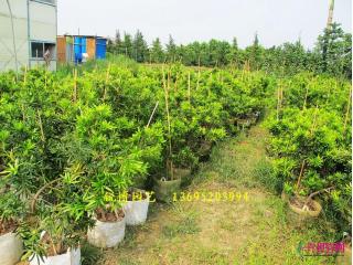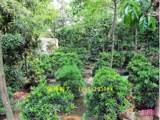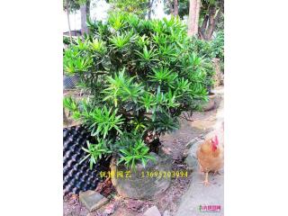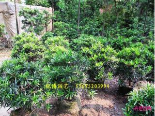 罗汉松(Podocarpus macrophyllus),别名土杉,罗汉松科,罗汉松属常绿针叶乔木。高达20m,胸径60cm,树冠广卵形。树皮灰褐色至暗灰色,浅纵裂,片状脱落。枝叶稠密,叶条状披针形,螺旋状互生,长7~12cm,宽7~10mm,两面中肋明显隆起,表面浓绿色,背面黄绿色。喜温暖湿润气候,耐寒性弱,华北盆栽观赏,分布江苏、浙江、福建、安徽等地。材质细致均匀,易加工。有药用价值,可作家具、器具、文具及农具等用