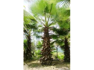 这是棕榈科植物中较耐寒的种类之一,可耐-6℃的低温,抗风抗旱力均很强,生长迅速,树干直而挺拔,基部显著膨大,,粗壮而呈红褐色的树干格外引人注目。成年树高大雄伟,最高可达20m,头径50-90cm,树冠优美,叶大如扇,四季常青。掌状叶裂片间在幼时具白色的卷曲的丝状纤维, 能给人一种遐想万缕的感受。此品种遍植于美国加州的公路旁,差不多成为加州马路树的标志,有人称之为加州蒲葵,在公路两旁,由华盛顿葵构成的美丽景观会给驾乘人员一种愉悦的视觉享受,足以消除旅途疲劳。除了作为道路绿化树种外,被大量应用为园景树、行道树,或装点于立交桥畔、别墅宾馆。在公园、广场、河滨等较宽阔地带,孤植或群植,营造出绮丽多姿的热带、亚热带风光。
