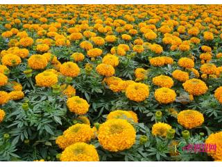 万寿菊是一种常见的园林绿化花卉,其花大、花期长,常用来点缀花坛、广场、布置花丛、花境和培植花篱。中、矮生品种适宜作花坛、花径、花丛材料,也可作盆栽;植株较高的品种可作为背景材料或切花。