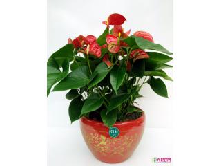 红掌是一种象征吉祥的室内开花品种,因其又大又红的花朵含意大展鸿图,多用于乔迁新居,办公台面摆设。红掌是一种一年四季都能开花的品种,对生长环境要求不高,又能起到净化空气,所以近年大受爱花一簇宠爱。