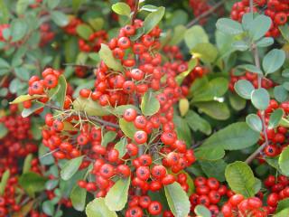 火棘又名救兵粮、救命粮、火把果、赤阳子,蔷薇科火棘属常绿灌木或小乔木,高可达4m,通常采用播种、扦插和压条法繁殖。 火棘树形优美,夏有繁花,秋有红果,果实存留枝头甚久,在庭院中做绿篱以及园林造景材料,在路边可以用作绿篱,美化、绿化环境。
