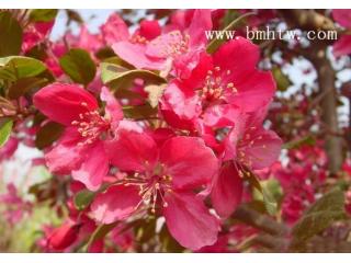 6、垂丝海棠---落叶小乔木,枝开张、叶卵形,花朵5-7夺簇生枝端,鲜红色,4-5月开放。花色艳丽,花姿优美,花瓣成玫瑰红色,朵朵弯曲下垂,如遇微风飘飘荡荡,娇柔红艳,远望犹如彤云密布,美不胜收,是深受人们喜爱的庭院木本花卉和盆景树种。