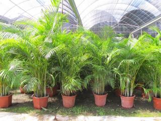 散尾葵,又名黄椰子,为丛生常绿灌木或小乔木。茎干光滑,黄绿色,无毛刺,嫩时披蜡粉,上有明显叶痕,呈环纹状。叶面滑细长,羽状复叶,全裂,长40~150cm,叶柄稍弯曲,先端柔软;裂片条状披针形,左右两侧不对称,中部裂片长约50cm,顶部裂片仅10cm,端长渐尖,常为2短裂,背面主脉隆起;叶柄、叶轴、叶鞘均淡黄绿色;叶鞘圆筒形,包茎。肉穗花序圆锥状,生于叶鞘下,多分支,长约40cm,宽50cm;花小,金黄色,花期3~4月。果近圆形,长1.2cm,宽1.1cm,橙黄色。种子1~3枚,卵形至椭圆形。基部多分蘖,呈丛生状生长。形态特征 散尾葵为丛生常绿灌木或小乔木。茎干光滑,黄绿色,无毛刺,嫩时披蜡粉,上有明显叶 散尾葵痕,呈环纹状。叶面滑细长,羽状复叶,全裂,长40~150 cm,叶柄稍弯曲,先端柔软;裂片条状披针形,左右两侧不对称,中部裂片长约50cm,顶部裂片仅10cm,端长渐尖,常为2短裂,背面主脉隆起;叶柄、叶轴、叶鞘均淡黄绿色;叶鞘圆筒形,包茎。肉穗花序圆锥状,生于叶鞘下,多分支,长约40cm,宽50cm;花小,金黄色,花期3~4月。果近圆形,长1.2cm,宽1.1cm,橙黄色。种子1~3枚,卵形至椭圆形。基部多分蘖,呈丛生状生长。编辑本段生态习性 性喜温暖湿润、半阴且通风良好的环境,不耐寒,较耐阴,畏烈日,适宜生长在疏松、排水良好、富含腐殖质的土壤,越冬最低温要在10℃以上。原产地可高达3~8m。生长季节必须保持盆土湿润和植株周围的空气湿度;散尾葵怕冷,耐寒力弱,在中国北方地区室外培养的一般于9月下旬至10月上旬入室,须放在阳光充足处,越冬期室温白天23℃至25℃,夜间维持15℃,至少需保持8℃以上,否则会受冻害,造成冬春季死亡;在越冬期还须注意经常擦洗叶面或向叶面少量喷水,保持叶面清洁。 散尾葵散尾葵为热带植物。喜温暖、潮湿、半荫环境。耐寒性不强,气温20℃以下叶子发黄,越冬最低温度需在10℃以上,5℃左右就会冻死。故中国华南地区尚可露地栽培,长江流域及其以北地区均应入温室养护。苗期生长缓慢,以后生长迅速。适宜疏松、排水良好、肥沃的土壤。枝叶茂密,四季常青,耐荫性强。幼树盆栽作室内装饰。 适宜生长在疏松、排水良好、富含腐殖质的土壤,越冬最低温要在10℃以上。茎干光滑无毛刺,上有明显叶痕,呈环纹状,基部多分蘖,呈丛生状生长。叶面滑细长,羽状复叶,亮绿色,长40~150 cm。小叶及叶柄稍弯曲,先端柔软。小羽片披针形,长20~25cm,左右两侧不对称,叶轴中部有背隆起。花小,金黄色,花期3~4月。编辑本段分布状况 原产非洲的马达加斯加岛,世界各热带地区多有栽培。我国引种栽培广泛。编辑本段繁殖 散尾葵可用播种繁殖和分株繁殖。播种繁殖所用种子国内不宜采集到,多从国外进口。常规的多用分株,于4月左右,结合换盆进行,选基部分蘖多的植株,去掉部分旧盆土,以利刀从基部连接处将其分割成数丛。每丛不宜太小,须有2~3株 ,并保留好根系;否则分株后生长缓慢,且影响观赏。分栽后置于较高湿温度环境中,并经常喷水,以利恢复生长。 散尾葵盆栽可用腐叶土、泥炭土加1/3河沙及部分基肥配制成培养土。它蘖芽生长比较 散尾葵靠根茎上,盆栽时,因较原来栽的稍深些,让新芽更好地扎根。5~10月是其生长旺盛期,必须提供 比较充足的水肥条件。平时保持盆土经常湿润。夏秋高温期,还要经常保持植株周围有较高的空气湿度,但切忌盆土积水,以免引起烂根。一般每1~2周施一次腐熟液肥或复合肥,以促进植株旺盛生长,叶色浓绿,秋冬季可少施肥或不施肥,同时保持盆土干湿状态。散尾葵喜温暖,冬季需做好保温防冻工作,一般10℃左右 可比较安全越冬,若温度太低,叶片会泛黄,叶尖干枯,并导致根部受损,影响来年的生长。它喜半阴,春、夏、秋三季应遮阴50%。在室内栽培观赏宜置于较强散射光处;它也能耐较阴暗环境,但要定期移至室外光线较好处养护,以利恢复,保持较高的观赏状态。如果环境干燥、通风不良,容易发生红蜘蛛和介壳虫,故应定期用800倍氧化乐果喷洒防治。