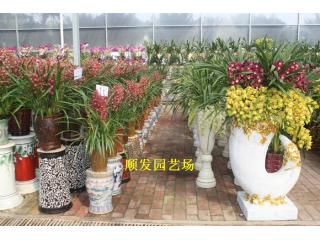 切花栽培技术要点: 大花蕙兰切花逐渐显露商机,在荷兰拍卖市场上1支大花蕙兰切花平均拍卖价格2.35欧元,拍卖额7.1千万欧元,排名已经跃居切花第6名(2006荷兰花卉拍卖协会VBN数据)。目前中国仅仅有少量大花蕙兰出口,市场前景十分良好。 品种选择:要选用切花品种进行栽培。 上山催花:第一次开花时切花栽培技术与盆栽相同 ,夏季6月份上山越夏催花,开放时剪切切花。植株于花后留芽2个以便来年开花用,以后不再上山。这种植株花期比上山的花期要晚,结果就相当于延长了供花期。 切花采收:花序开放20~30%为合适采收期,储存于2~5℃冷库中。切花用软纸包装,放入纸箱中运输。瓶插寿命可达30天以上。 大花蕙兰的日常栽培技术方法是:(1)培养基质的选用。 大花蕙兰的栽培中,应选用一些颗粒较大的培养基质;一般可选用蛭石、椰子屑、碎砖粒、陶烧土和水苔等来种植。(2)光照的控制。 与传统的国兰相比,大花蕙兰对光照的要求要高一些。光照的不足将导致植株纤细瘦小,抗病力弱外,还明显影响大花蕙兰的生殖生长;春季遮光20%—30%,夏季遮光40%—50%,九月下旬至12月花芽生长期可开始增加光照。盛夏遮光50%—60%,秋季多见阳光,有利于花芽形成与分化。温室大花蕙兰种植冬季雨雪天,如增加辅助光,对开花极为有利。(3)肥料管理。大花蕙兰的栽培目前多选用非土壤的基质,肥效不够,所以在大花蕙兰的栽培中肥料的施用非常重要。一般3—9月宜选用含氮较多的肥料,如尿素;10月应施用含磷、钾较多的种类,如磷酸二氢钾。也可用兰花的专用肥。浓度一般以0.1%—0.3%为好。同时在开花后的4—5月和秋天的9—10月每月应施加1—2次追肥;追肥种类可用新沤熟的饼肥为主,骨粉、鱼粉、青草沤水等均可加以选用。(4)水分管理。在冬季3—5日浇水一次,盆土以偏干为好;因这时气温较低,植株细胞的含水量低些会更有利于大花蕙兰的越冬。春季开始,浇水量应逐步增加;至初夏每日浇水一次,一直持续至秋季,再逐步减少。(5)温度。大花蕙兰在冬季应移入温室内越冬,并保持有5—8℃以上的温度。编辑本段注意事项